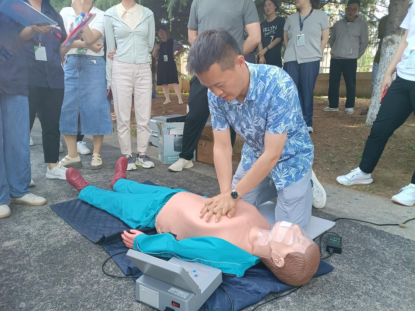 在心肺復蘇環節,1名隊員參賽,在150秒規定急救時間內完成救援任務。